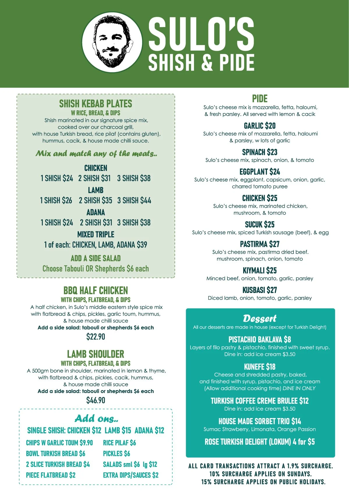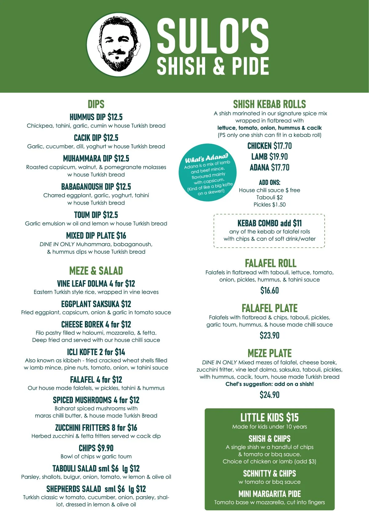 Created by Sulo Kirbancioglu, head chef & owner of award winning Safran restaurant (now closed), Sulo’s Shish & Pide is a relaxed & casual eatery focused on traditional Turkish fare.