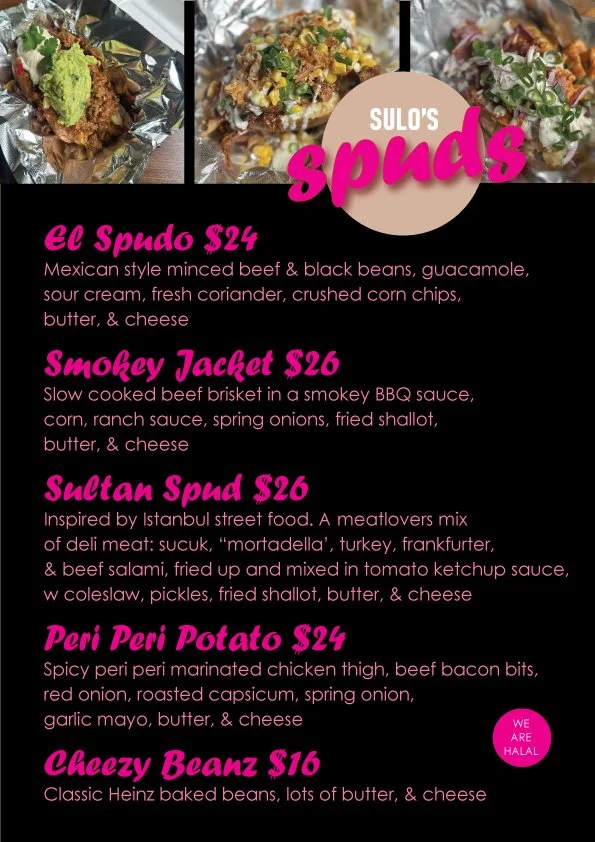 New to Sulo’s are our loaded baked potatoes. Inspired by the Turkish kumpir baked potato, we have five fun flavours for you to try!